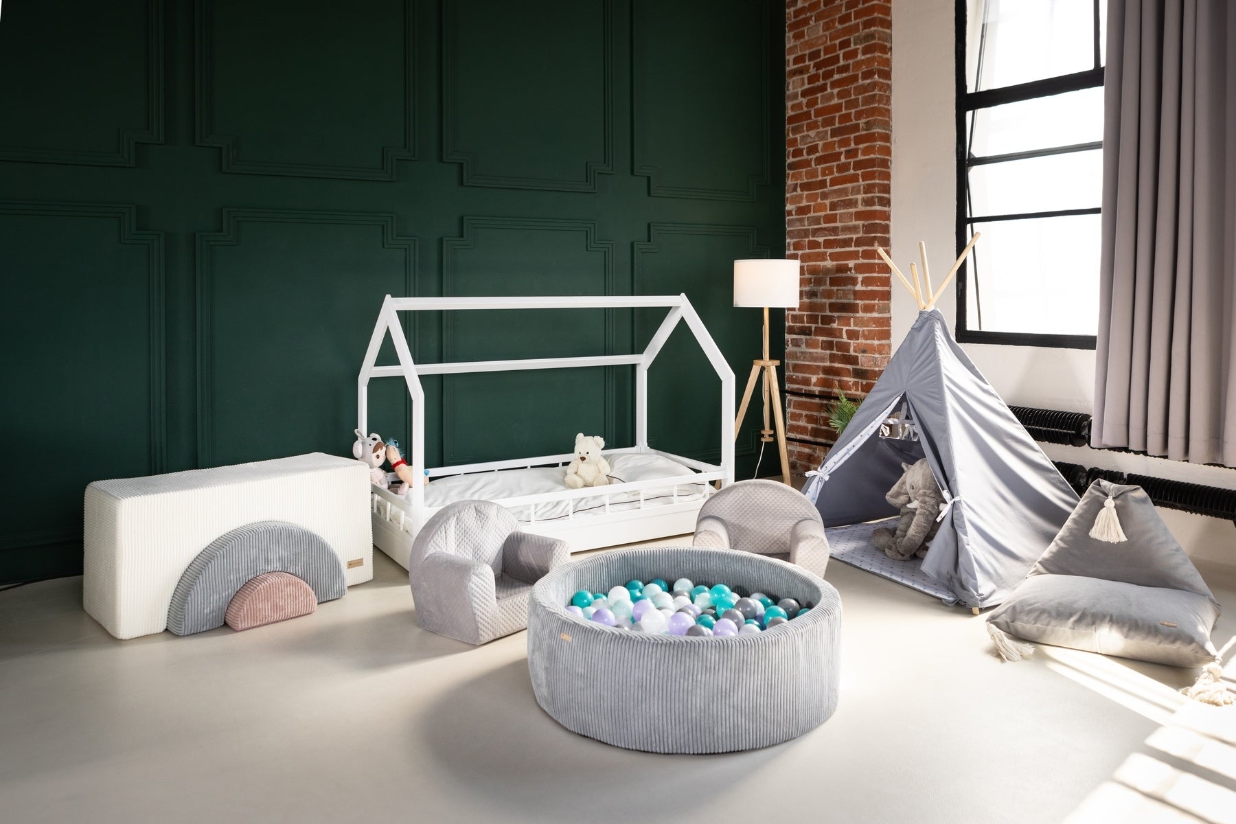 Das Bällebad besteht aus weichem, antiallergenem Schaumstoff, der Ihrem Kind sicheres Spielen garantiert. Dank der sanften und modernen Farbpalette passt das Bällebad in jedes Zuhause. Der Bezug des Bällebads ist mit einem Reißverschluss versehen, sodass er abnehmbar und in der Maschine gewaschen werden kann, um die Sauberkeit des Produkts zu gewährleisten.
